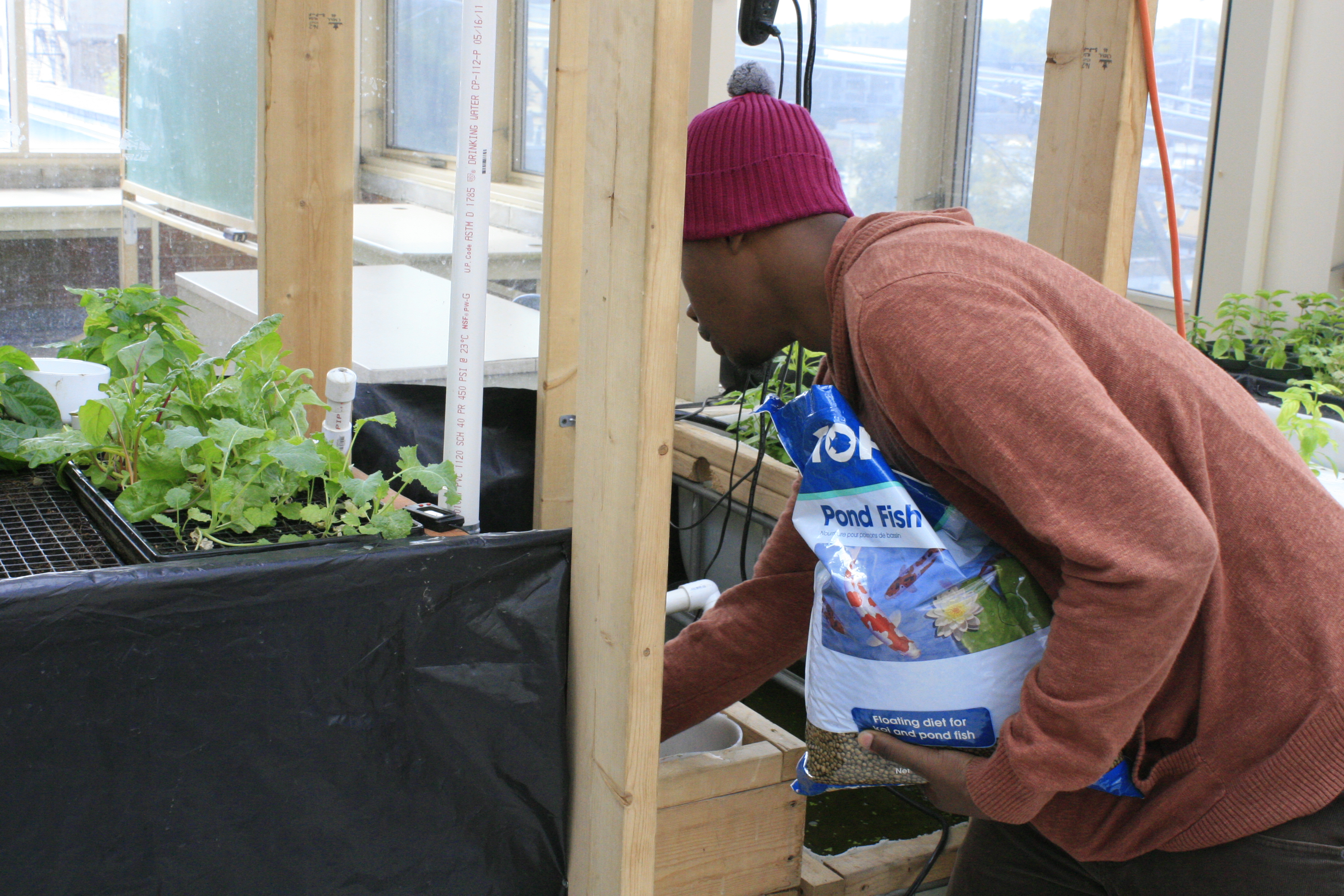 AJH has a greenhouse located in Gale Math & Science Academy where they grow a number of plants and some food such as peppers, herbs, micro greens, and chilis. Some of the food grown here is sold to help fund the work of AJH. The most interesting thing about this greenhouse is the aquaponics system that is the reason for the abundant growth within the greenhouse. My main duty at AJH is to make sure this aquaponics system is running properly and to maintain it. I feed the fish inside the system, clean it, and fix whatever problem there may be with it. But I am new to aquaponics, and honestly I need to read more and learn more on it. I follow the lead of another apprentice for AJH name Sergio Cullum, who has been working there much longer than I and knows so much more about aquaponics and how it works than I do.