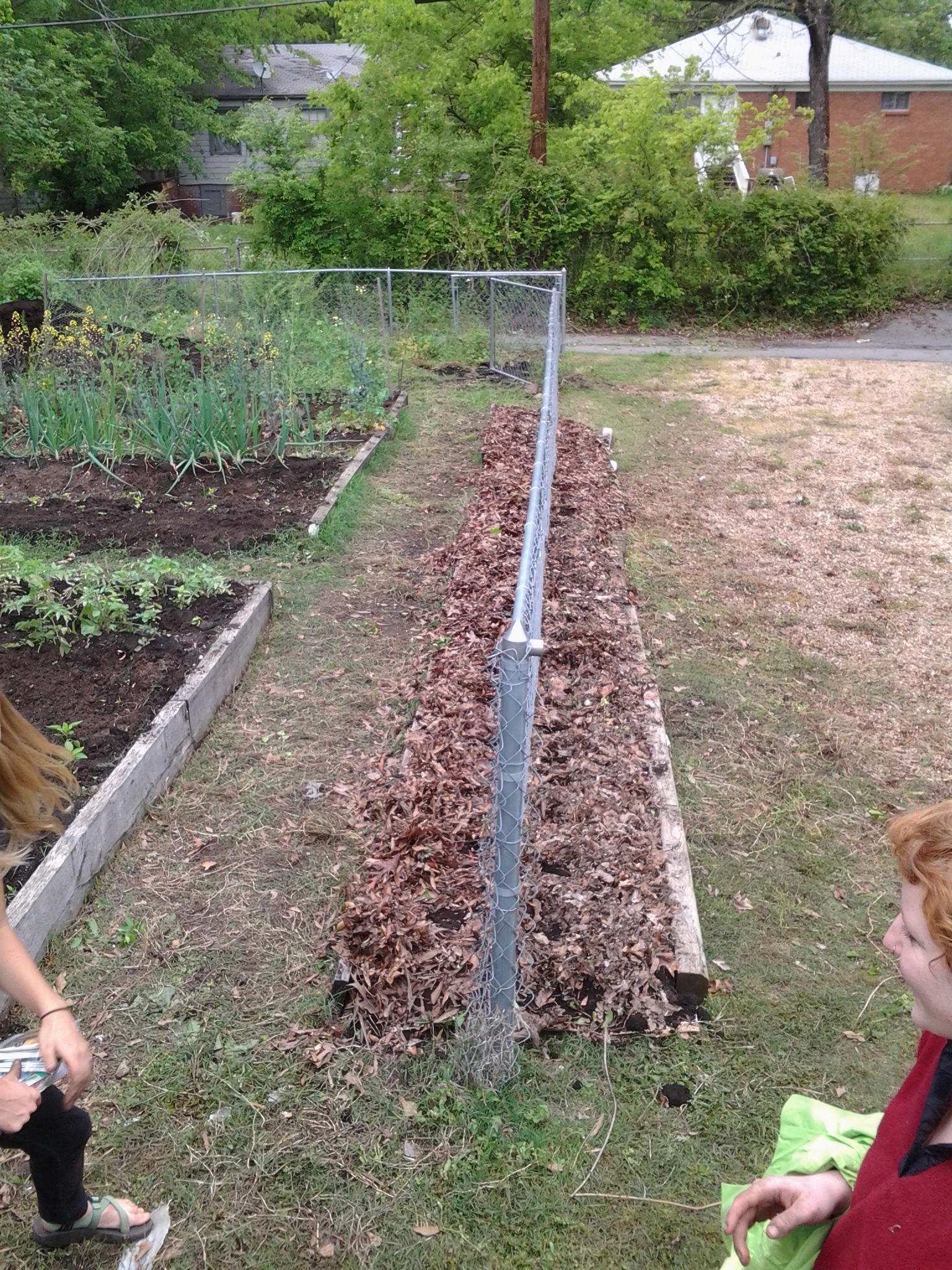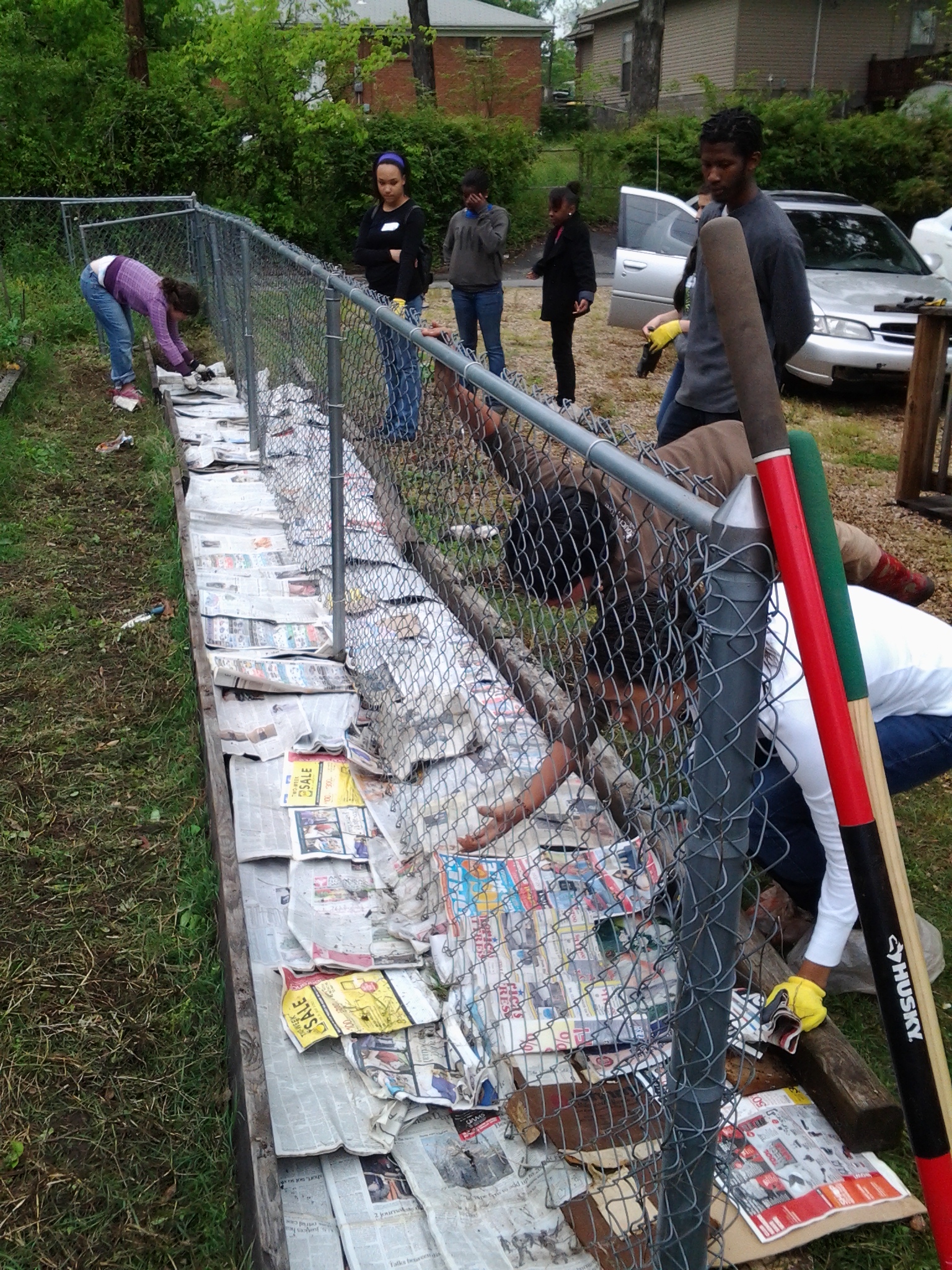 Several recent occurrences have been jolting reminders of the importance of remaining grounded. One realization was thanks to a friend who came to our April 27th garden work day and imparted some of her knowledge of Permaculture design. She was helping us to build a lasagna bed, which basically incorporates layers of green material (nitrogen-rich) and brown material (carbon-rich) over a layer of weed block (pictures below!). I was lamenting the fact that we hadn’t bought mulch or synthetic weed block, but she said, “what do you mean? It’s all around us for free!” She sent a team down the alley behind the garden and they returned with wheelbarrows full of fallen leaves, which made excellent mulch. We raided recycle bins nearby for discarded newspaper and snipped overgrown bushes and vines in an empty lot next door for green material. The world is brimming with ample and free resources, if only we can open our eyes and our minds enough to SEE!