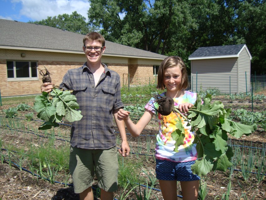 DSC04197 Published July 30, 2013 at 3264 × 2448 in The Power of Youth Colin and Hadley with huge radishes!