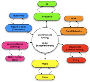 So far, I’ve particularly enjoyed our entrepreneurship workshops with Matt Hampton of Elevate Entrepreneurship Systems. Through weekly workshops, Matt is helping us develop social enterprises. Last week we learned about business modeling. Matt explained that there are four fundamentals of business: human resources, marketing, operations, and finances. First we practiced business modeling using Starbucks as an example. We mapped out how Starbucks carefully manages its operations, human resources, and marketing to create a cool coffeehouse environment. With its trendy vibe, Starbucks is able to sell $5 cups of coffee and bring in revenue.